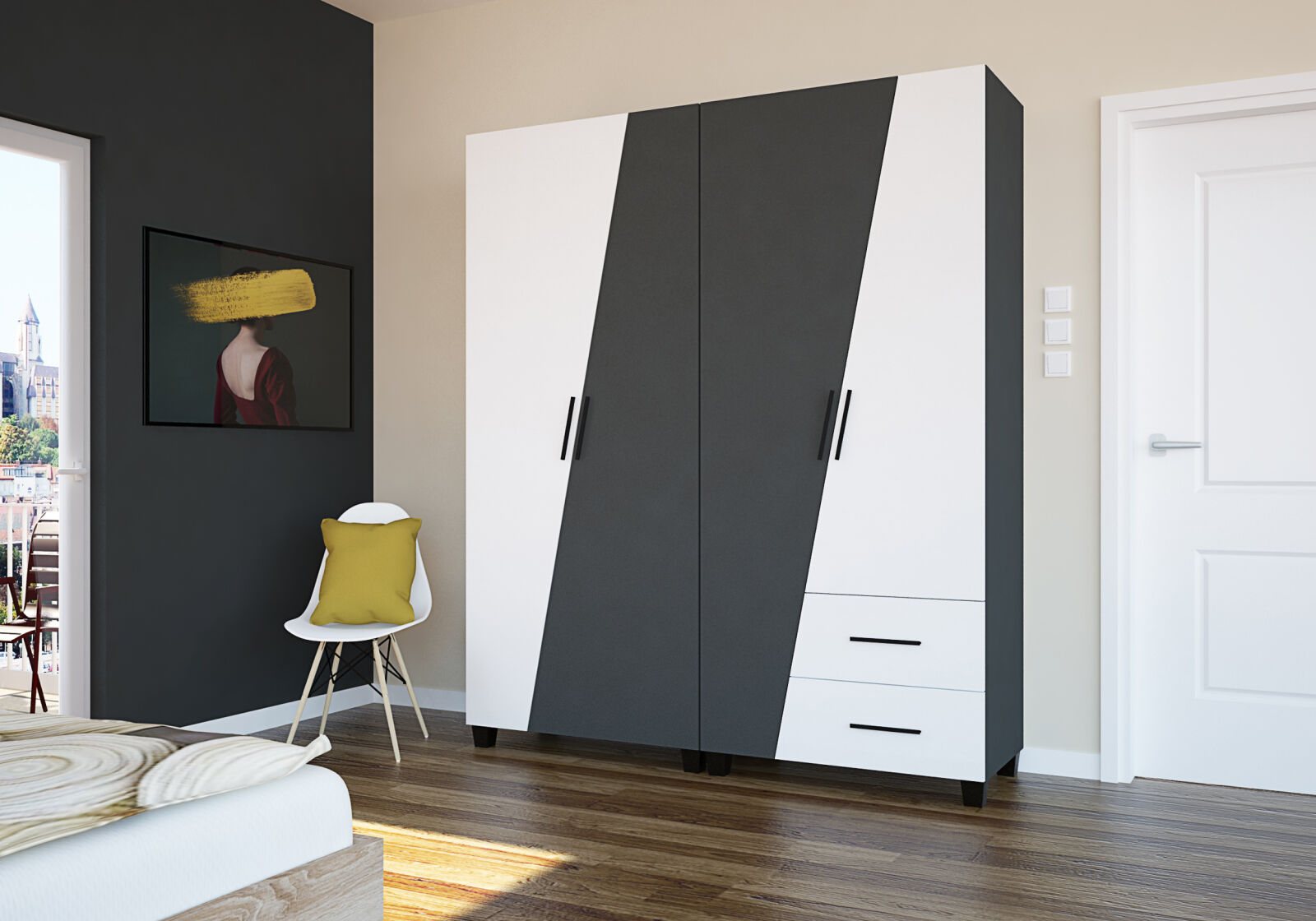 Az Onix gardrób egy méretben kapható. A 180 centiméteres kivitel jól kihasználható részekből épül fel. Az alsó 2 fiók, illetve az akasztós tárolórész nagyon sok ruha kényelmes elhelyezését teszi lehetővé. A tükrös ajtók a komfortos öltözködést segítik, és a teret is növelik a hálószobában.