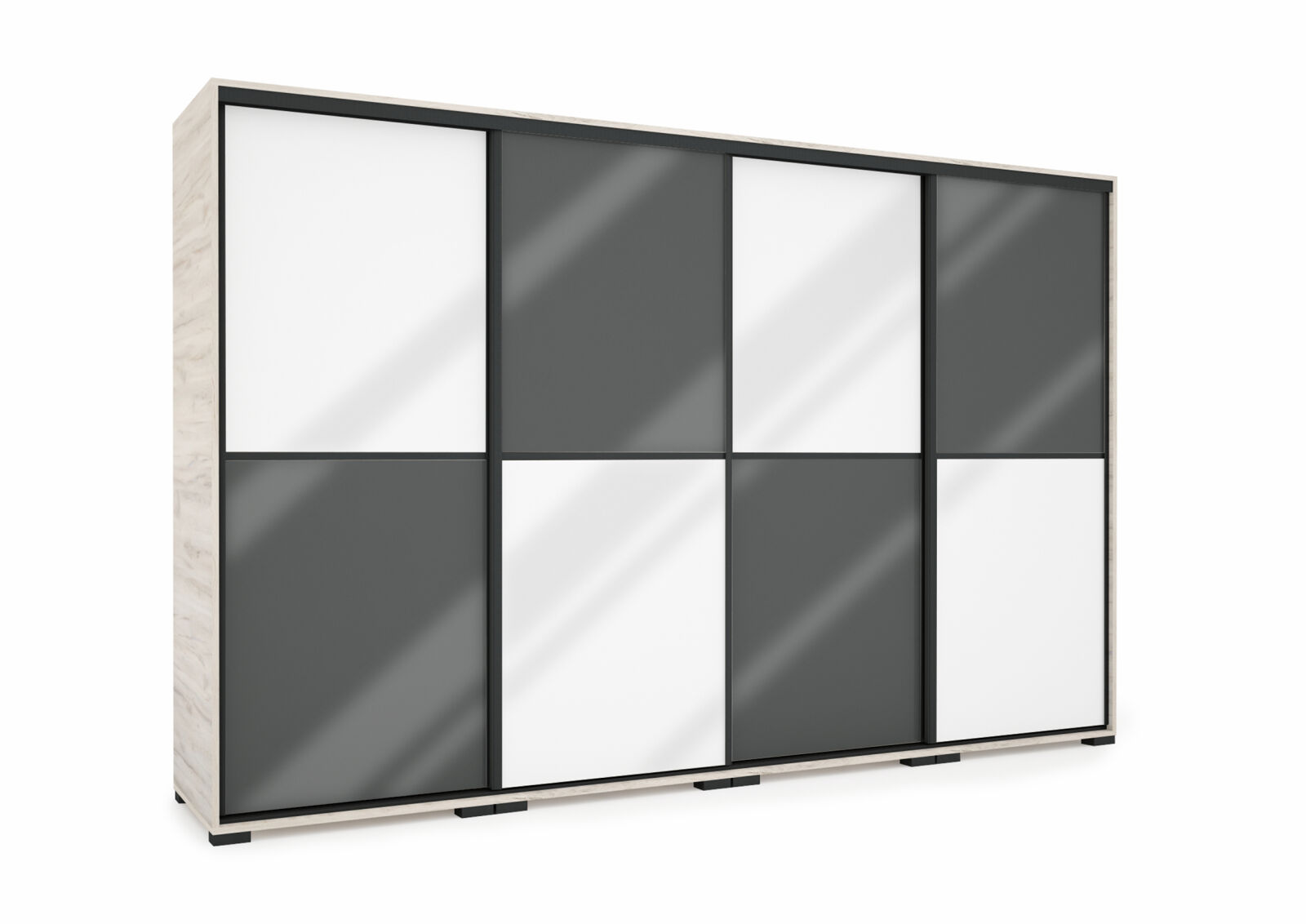 A Queen gardrób ajtajai magasfényű MDF-ből készültek, ami nemcsak luxus hatást kelt, hanem könnyen tisztítható is. Az egyes ajtók 2 részből állnak, találkozásuknál egy ízléses díszcsík fut végig, ami kiemeli a gardrób karakterét. Az egyszerű, letisztult vonalak modern stílust sugároznak, miközben a díszcsík hozzáad egy kis extra eleganciát. Belső elrendezését tekintve teljesen személyre szabható, köszönhetően az akár egymásra is helyezhető fiókdobozoknak, polcoknak, mándlirudaknak.