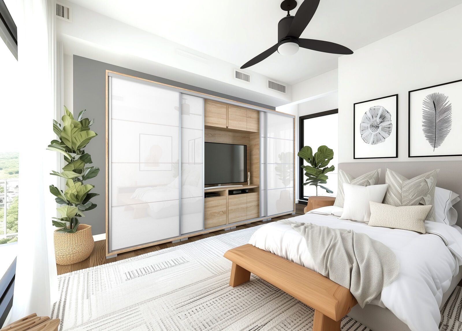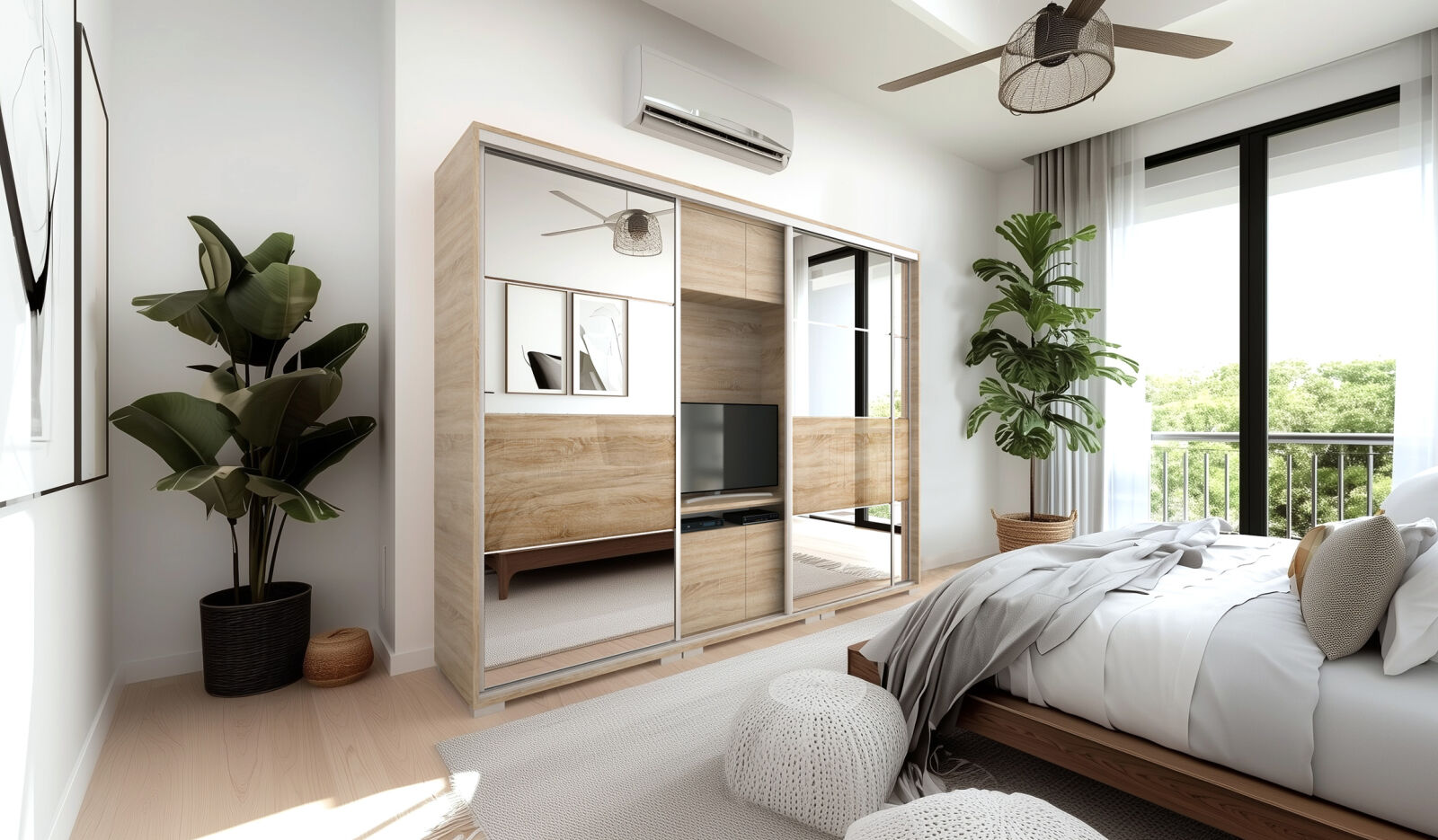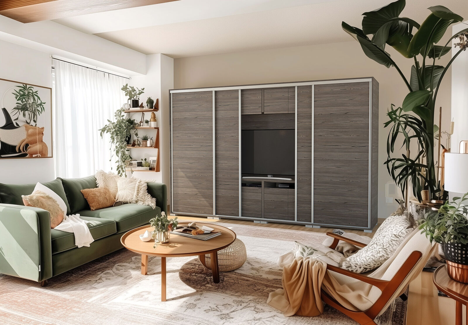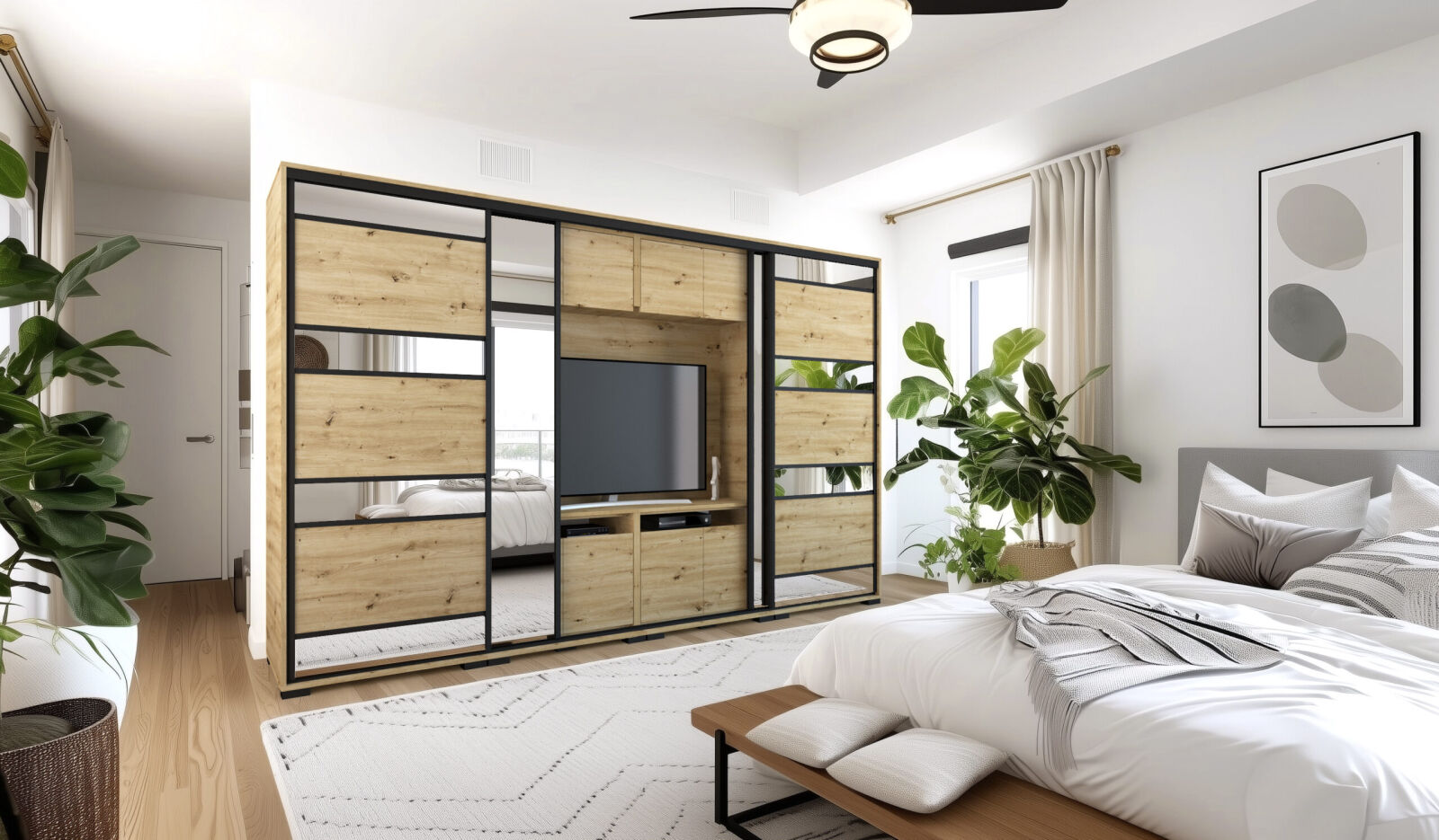 Saját igényére szabhatja a gardrób megjelenését, mivel különböző ajtó típusokkal rendelheti meg. 239 cm és 318 cm-es méretben kaphatóak. Választhatja akár díszcsíkkal ellátott ajtóval, akár tükör vagy üveg dekorációs elemmel, esetleg magasfényű ajtóval is. 14 szín közül lehet választani a korpusz és a front esetében is . Egyediségét az adja, hogy zárt állapotban egy elegáns tolóajtós gardróbnak tűnik, viszont a középső részen televízió számára kialakított hely található. Kiegészíthető még RGB Led világítással. Opcionálisan választható termékek: – sarokpolc – tolóajtós sarokelem – fózolt tükör – tükör – fiókos alsó magasító – tolóajtós felső magasító.