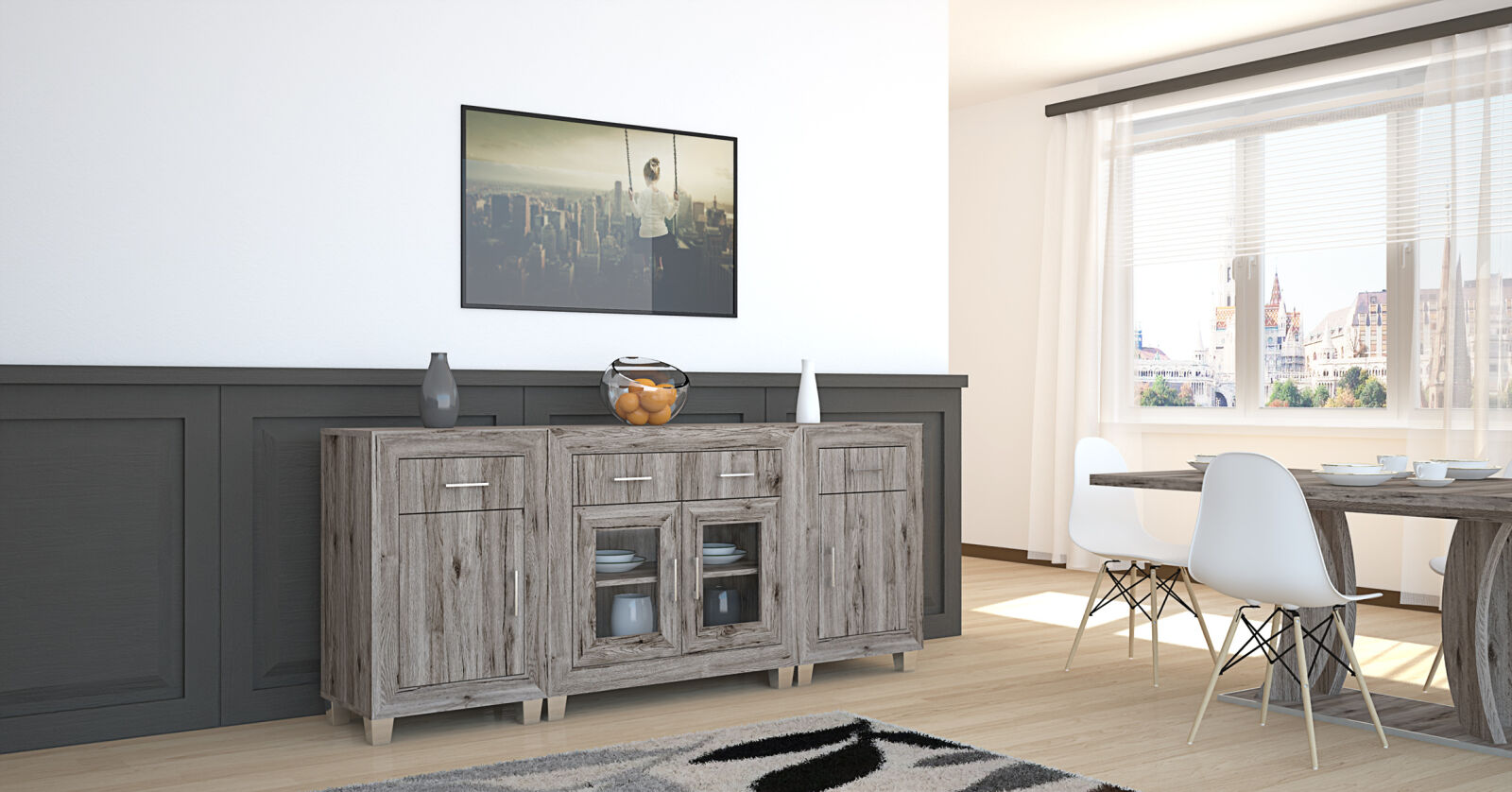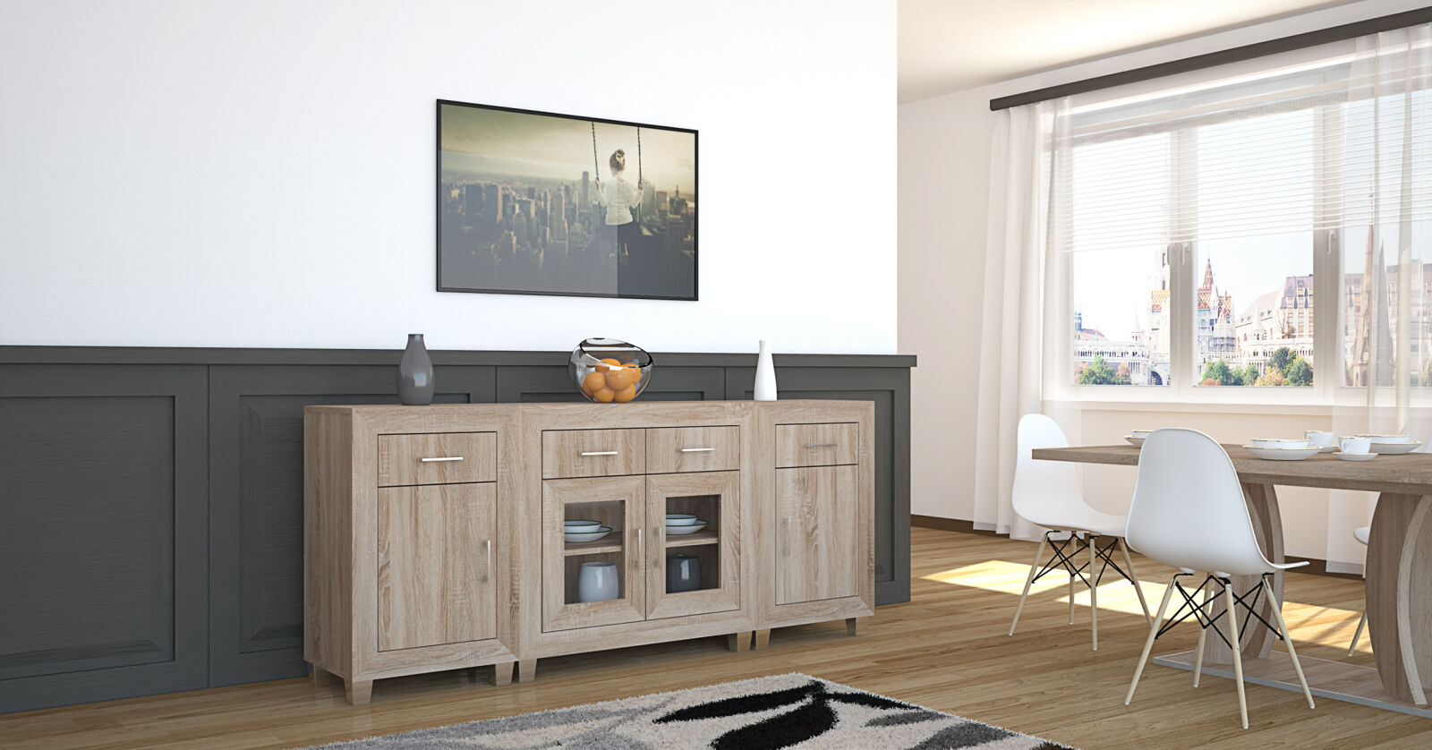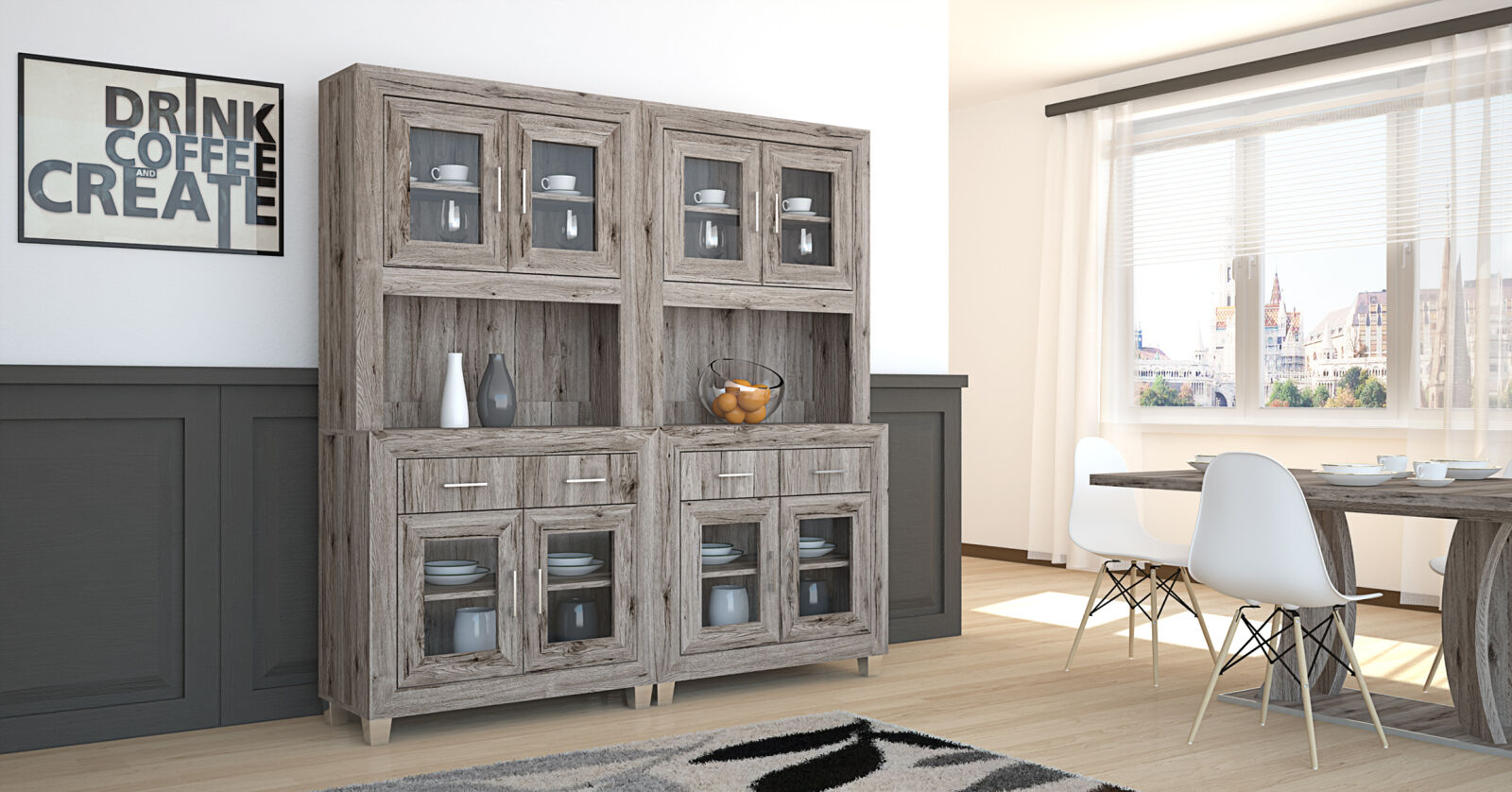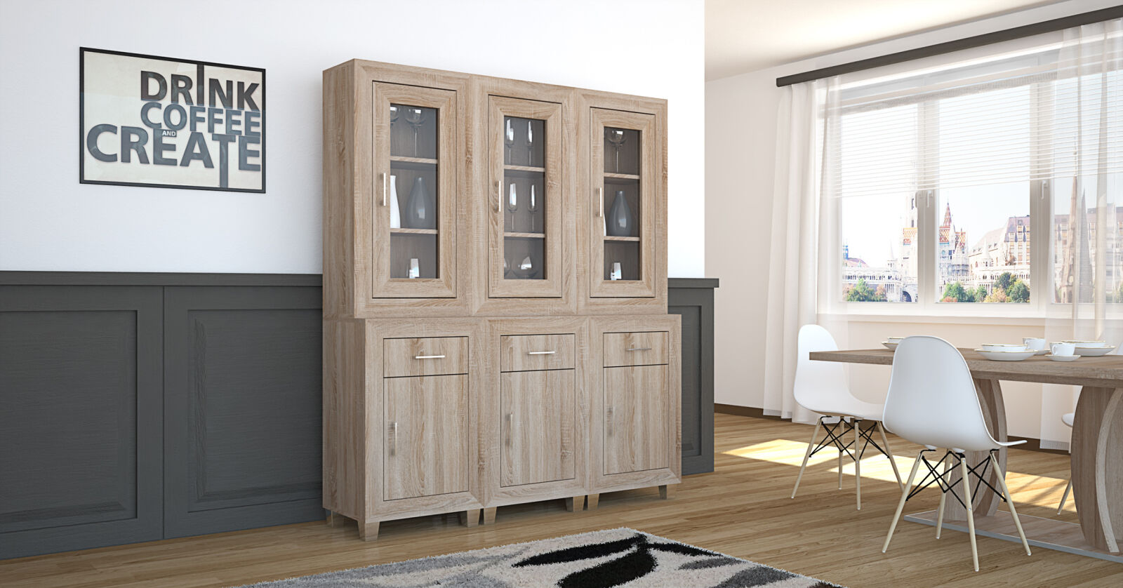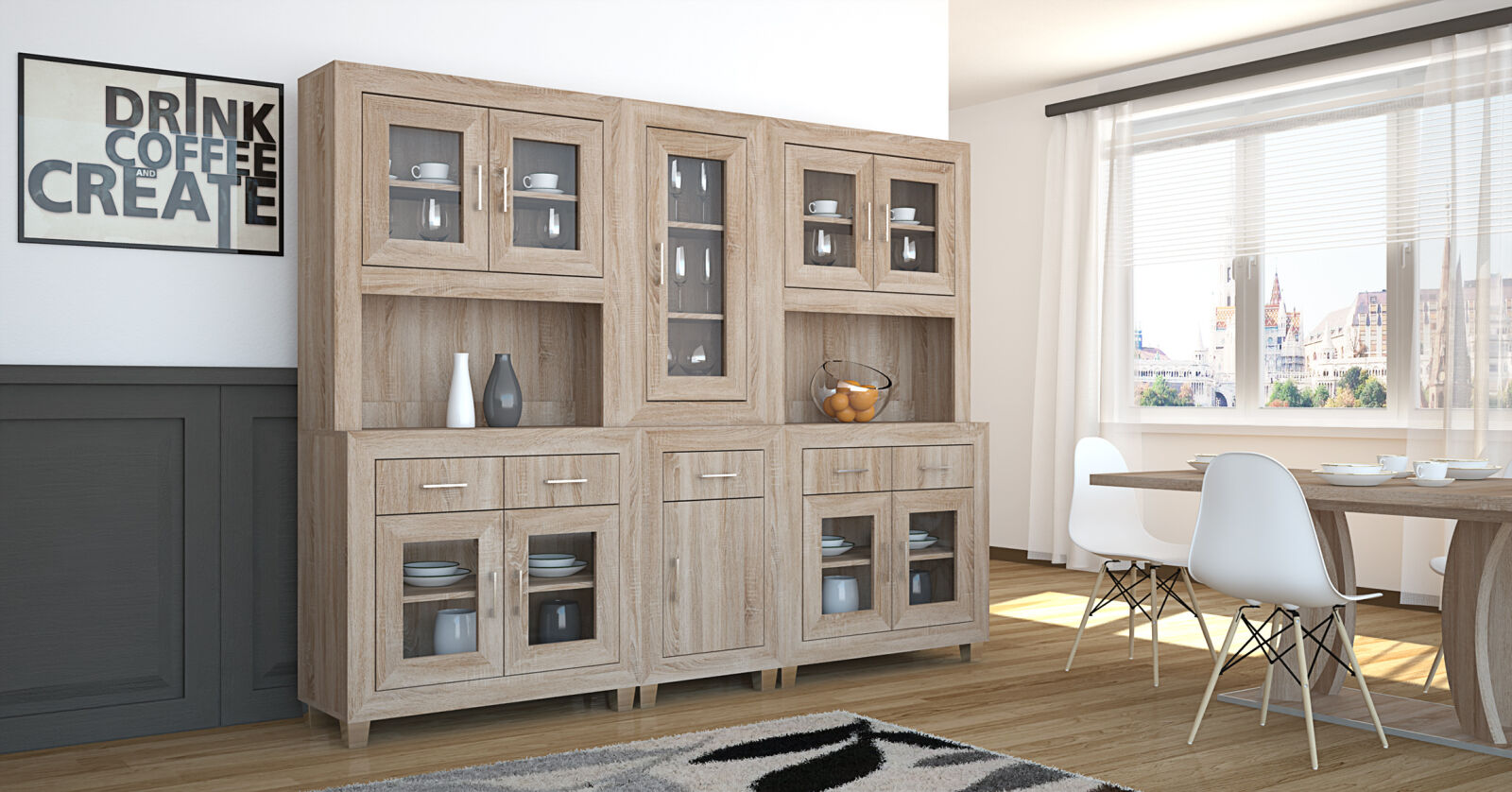 A Dany tálaló elemes kialakításának köszönhetően nagyon jól kombinálható bútordarab. Az 56 és 96 cm széles elemek variációja többféle megjelenést tesz lehetővé. A mai modern konyhákat, étkezőket is remekül kiegészíti. Sonoma tölgy és san remo színekben választható.