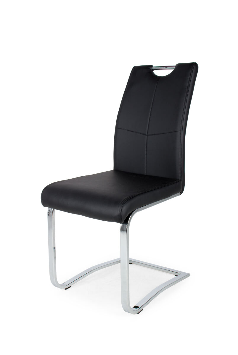 A Mona szék krómozott fém lábaival és műbőr kárpitjával a modern stílusú otthonokba illik a legjobban. A kényelmes ülőfelület és háttámla ideális választás lehet mindazok számára, akik az étkezőben igényes bútorokat szeretnének elhelyezni. Szürke és fekete színben kapható.