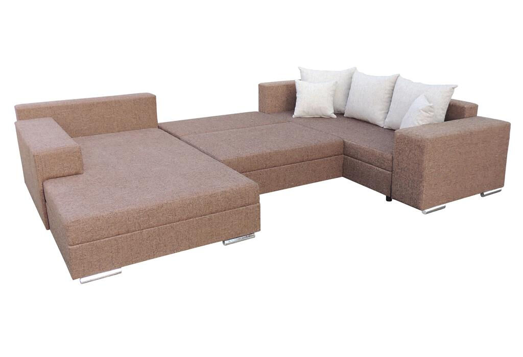 - Magas fekhelyes - Laminált fehér ágyneműtartóval - Minőségi vastaghabbal - A teljes szövet és bőrválasztékból rendelhető, - jobbos-balos változatban. - Krómozott fémlábakkal. Méretei: Fekvőmagasság: 42 cm Fekvőfelület: 296 x 132 cm Teljes magasság: 87 cm Szélessége: 345 cm Mélysége: 238/206 cm Ülőmélység párnáig: 58 cm 345x238x206cm.