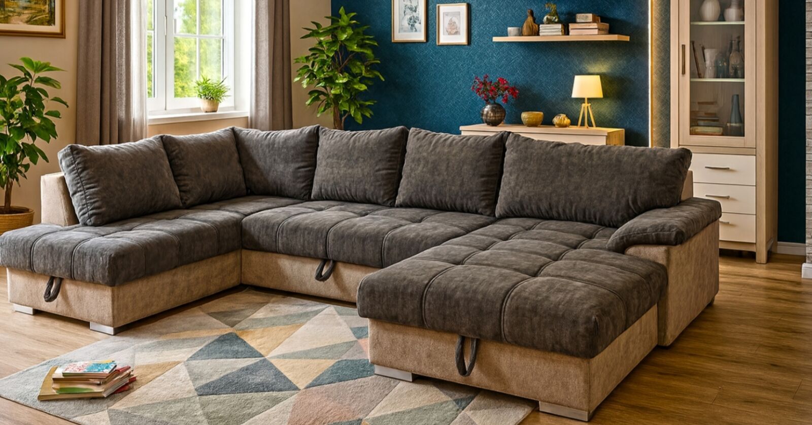 Teljes szövet és bőrválasztékból rendelhető,jobbos vagy balos állású,ágyazható ,ágyneműtartós sarokgarnitúra. Hullámrugós.(+ N30as szivacs) Vasszerkezetes magas fekhelyes fekvőfelület. Steppelt,tűzött ülőfelület Külmérete: 336x193x188cm Fekvőfelülete: 220x140cm Ülőmagasság:44cm