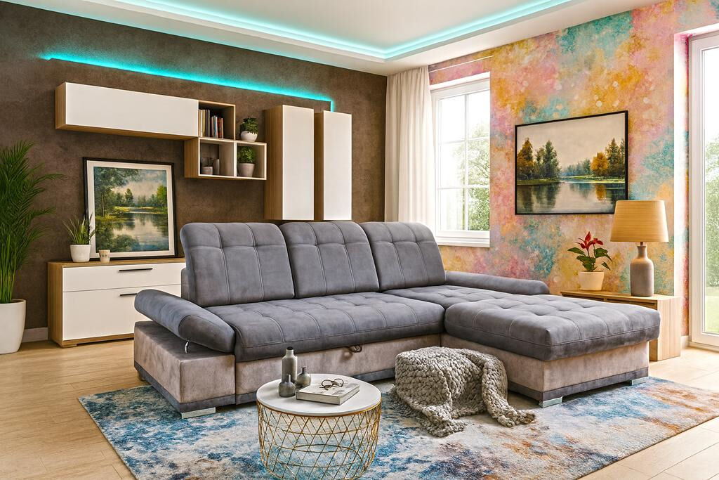 Teljes szövet és bőrválasztékból rendelhető,jobbos vagy balos állású,ágyazható ,ágyneműtartós sarokgarnitúra. Hullámrugós.(+ minőségi,nagy rugalmasságú vastaghab) Vasszerkezetes magas fekhelyes fekvőfelület. állítható fejtámlákkal és ülőmélységekkel Külmérete: 264x186x94/105cm Fekvőfelülete: 205x158cm Ülőmagasság:48cm