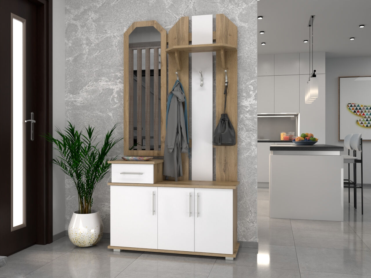Gerber előszobafal 100 cm-es Egyedi méretezéssel is rendelhető 40 féle színben, tetszőleges kiválasztható elrendezéssel és felszereltséggel. 18as bútorlapból,elemenként készre szerelt