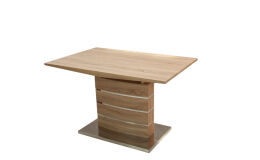Az asztal lapja fóliázott MDF, bővítése speciális billenő mechanikával és erős bovdenes vasalattal történik. A talp és a díszítő elemek anyaga saválló lemez. Összeszerelést igényel. Kétféle méretben sonoma színben raktárról rendelhető. Méret: 80 x 120+(40) x 75 cm (Szélesség x Hosszúság x Magasság) Bruttó súly : 55 kg