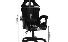Kéztámlák, Kárpitozott támlák kézre, Pozicionáhatló háttámla ,Párnákkal a hát és a fejrészen, Ergonomikus magas háttámla, Forgó Ringató mechanizmus, Gamer Kerekekkel Univerzális kerekek puha és kemény padlókhoz egyaránt, RGB LED megvilágítás távvezérléssel 300 szín Színek, intenzitás, fényerő és gyorsaság beállításának lehetősége, Powerbankon keresztül működik USB tápellátás a számítógépről vagy a power bankról