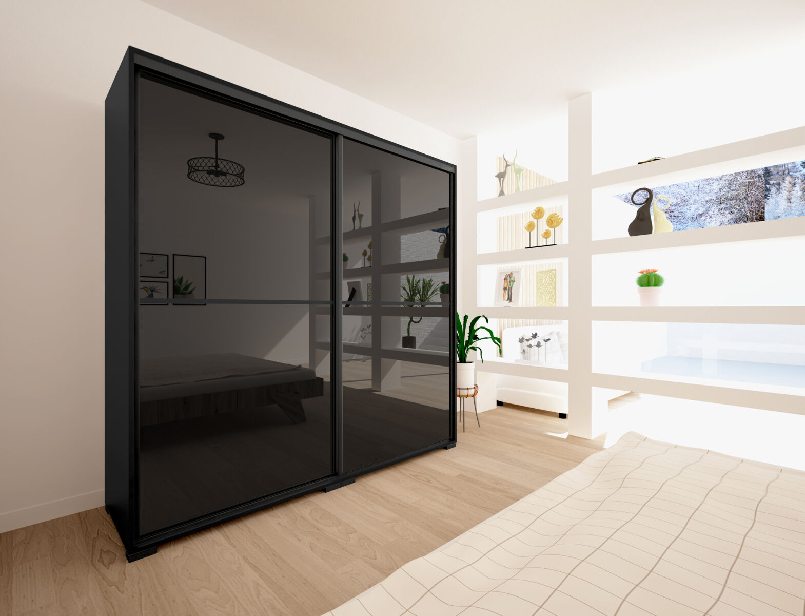A Queen gardrób ajtajai magasfényű MDF-ből készültek, ami nemcsak luxus hatást kelt, hanem könnyen tisztítható is. Az egyes ajtók 2 részből állnak, találkozásuknál egy ízléses díszcsík fut végig, ami kiemeli a gardrób karakterét. Az egyszerű, letisztult vonalak modern stílust sugároznak, miközben a díszcsík hozzáad egy kis extra eleganciát. Belső elrendezését tekintve teljesen személyre szabható, köszönhetően az akár egymásra is helyezhető fiókdobozoknak, polcoknak, mándlirudaknak.