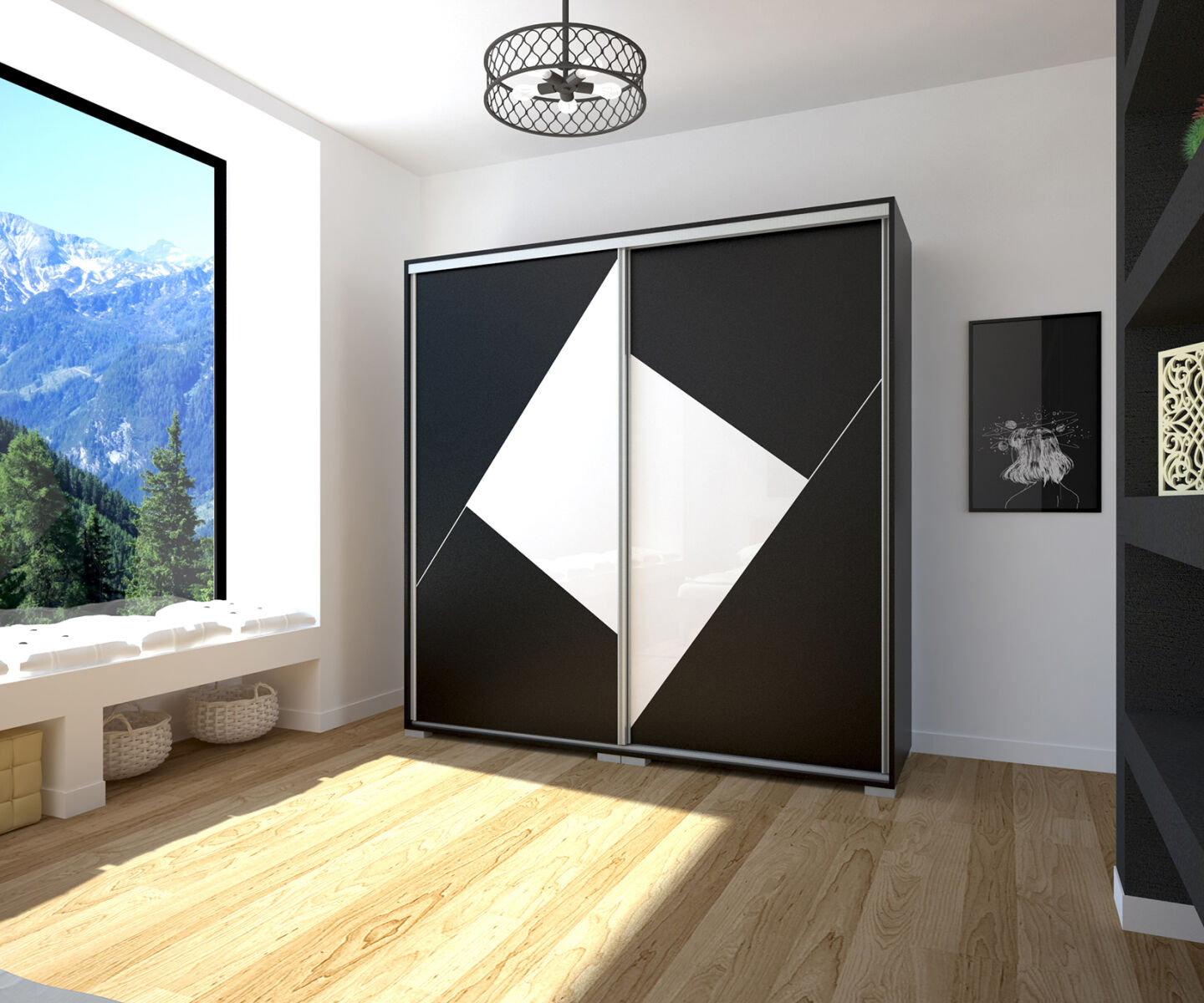 iatalos, modern megjelenésű Columbia gardróbunk 200 cm-es méretben kapható. Magasfényű, háromszög alakú betétje különleges karaktert ad a gardróbnak. A 6 féle magasfényű betét tetszés szerint variálható az ajtó és korpusz színeivel. Opcionálisan választható termékek: – sarokpolc – tolóajtós sarokelem – fiókos alsó magasító – tolóajtós felső magasító.