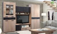 Nappali sor LED világítással (kék mintázat), DTD laminált, mart MDF front, extra magas fényű high gloss