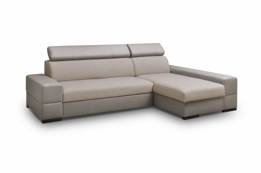 RUGÓS SAROKGARNITÚRA, ÁGYNEMŰTARTÓVAL, ÁGYFUNKCIÓVAL, ÁLLÍTHATÓ FEJTÁMLÁKKAL, JOBBOS, VAGY BALOS KIVITELBEN. MÉRETEK: m. 80-89/mé. 165/sz. 255 cm, fekvőfelület: 200 x 128 cm Csak a kép szerinti színösszeállításokban, textilbőr/ szövet kombináció