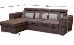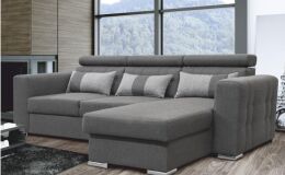 CHRIS, univerzális sarokülőgarnitúra ágyfunkcióval és ágyneműtartóval, állítható fejtámlákal. Anyag: Inari szövet, Szín: világosszürke 91 / sötétszürke 94 Méretek (Sz x Mé x Ma): 250x175x97 cm. Fekvőfelület (Szé/Ho): 130x202 cm, Ülésmagasság: 40 cm, Ülésmélység: 65 cm, Párnákkal együtt szállítjuk. Az Inari szövet 4 színárnyalatában rendelhető.