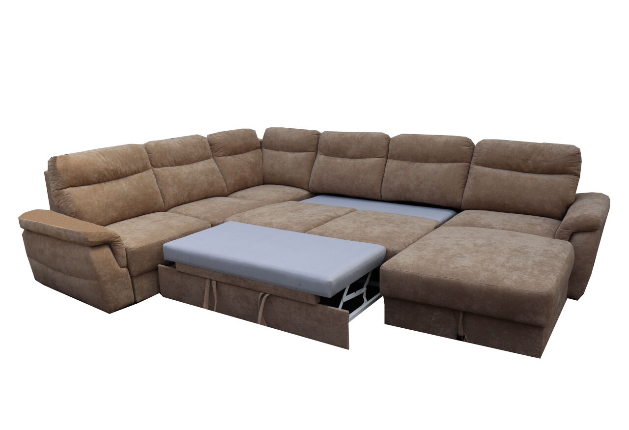 Teljes szövet és bőrválasztékból rendelhető,jobbos vagy balos állásban. ágyazható ,ágyneműtartós sarokgarnitúra. HR habos ülőfelület (minőségi nagy rugalmasságú vastaghab) Vasszerkezetes magas fekhelyes fekvőfelület. Elemenként is összeállítható
